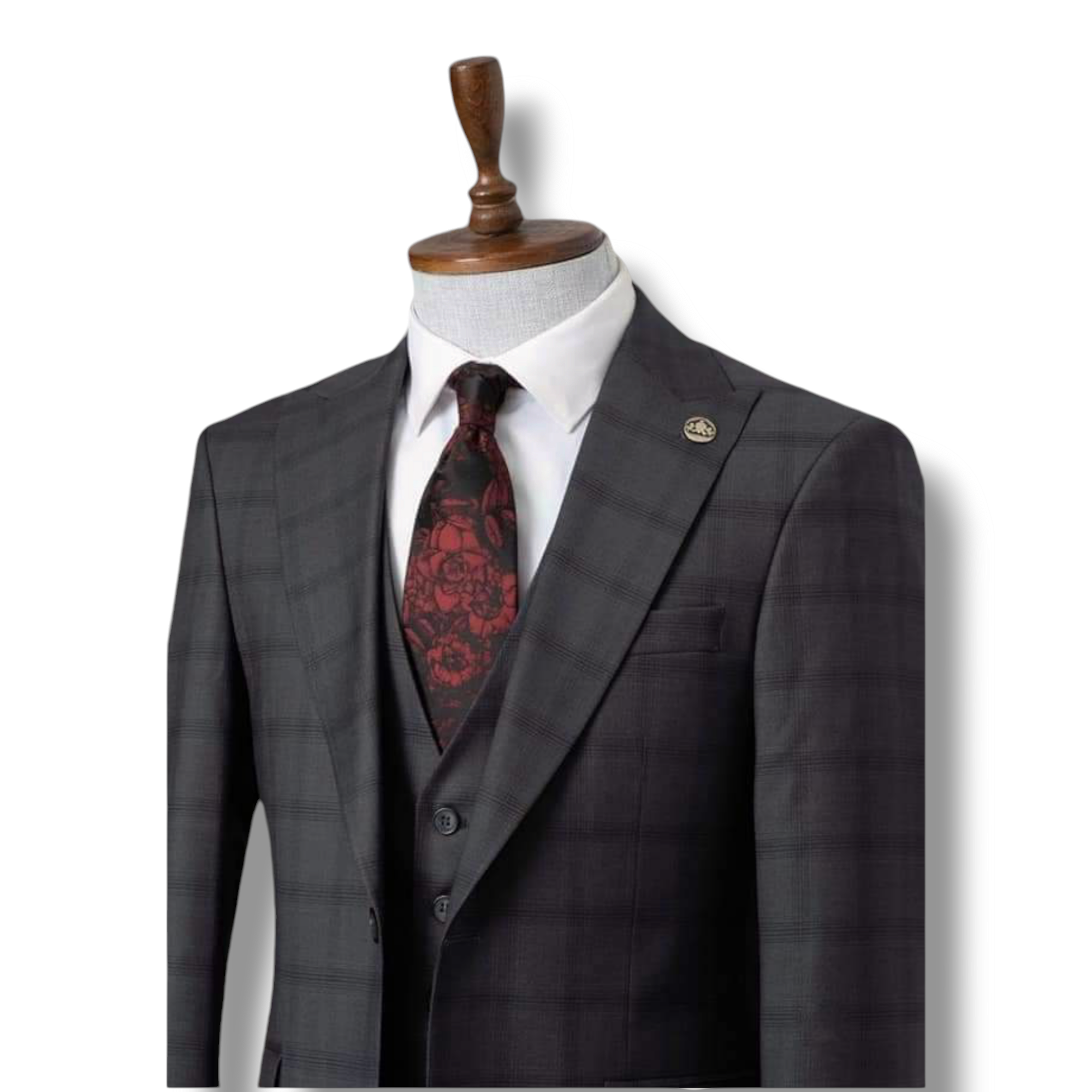 Elevate your formal wardrobe with this checkered three-piece suit, featuring a classic black and grey checkered pattern. Crafted from high-quality wool, this suit offers a perfect blend of sophistication, comfort, and durability.